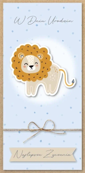 Elegancki karnet urodzinowy, dołączany wraz z kopertą. Wewnątrz karnetu zamieszczone są gotowe życzenia.