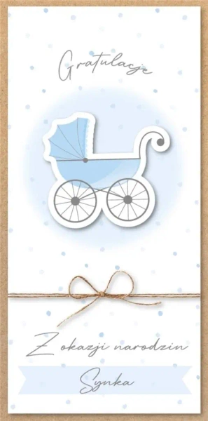 Prezentujemy elegancki karnet okolicznościowy dla nowo narodzonego chłopca, kompletny z dołączoną kopertą. Wewnątrz znajdują się także specjalne życzenia, które dodadzą większej osobistości Twojemu prezentowi.