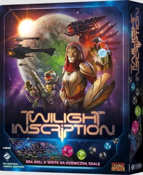 Twilight Inscription to skomplikowana gra w stylu roll-and-write, która skupia się na rywalizacji. Jako gracze, opanowujemy jedną z głównych ras znanych z uniwersum Twilight Imperium, z celem zajęcia pozycji najmocniejszej mocy w całej galaktyce. Staramy się to osiągnąć przez ekspansję, postęp technologiczny, wzrost gospodarczy i budowanie naszej siły militarnej. Kluczowym elementem gry są arkusze, na których gracze zaznaczają różne symbole w celu zdobycia jak najwięcej punktów.Podstawy gry