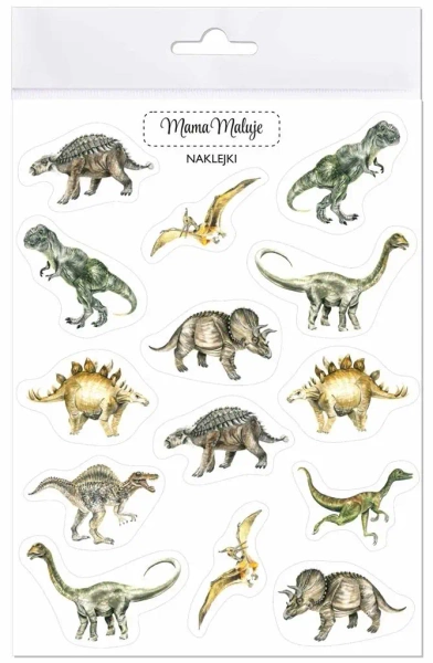 Każda naklejka jest ścietana zgodnie z kształtem danego dinozaura.