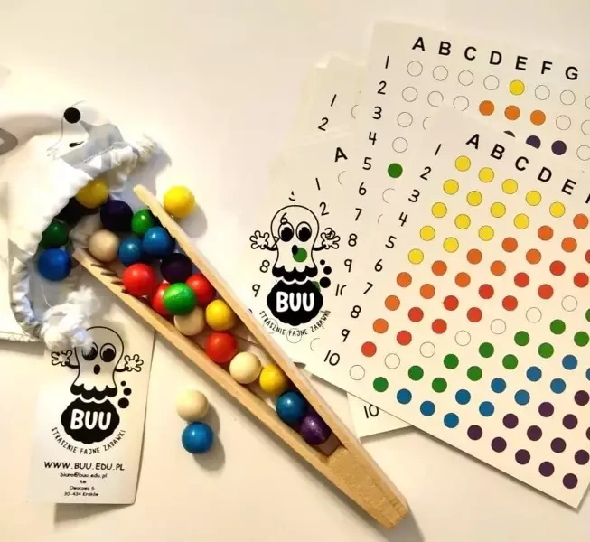 Kuleczkowa to interaktywna zabawka edukacyjna stworzona z myślą o wszechstronnym rozwoju dziecka. W trakcie zabawy, młodzi adepci mają możliwość tworzenia własnych wzorów, co pobudza ich do kreatywnego, twórczego myślenia oraz rozwija wyobraźnię. Dzięki pracy z dołączonymi do zestawu szczypcami lub układaniem kulek palcami, dzieci mogą doskonalić swoje zdolności manualne (małej motoryki), co przyczynia się równocześnie do koncentracji uwagi i skupienia.