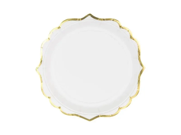 Papierowe talerzyki w odcieniu bieli z dodatkiem złotych elementów