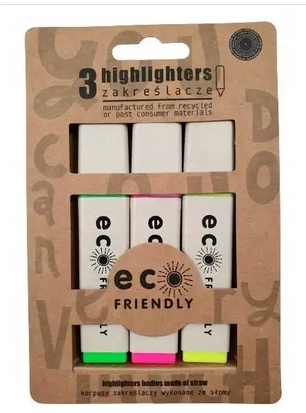 Ekologiczne zakreślacze korpus ze słomy 3 kolory - Ziemia Obiecana