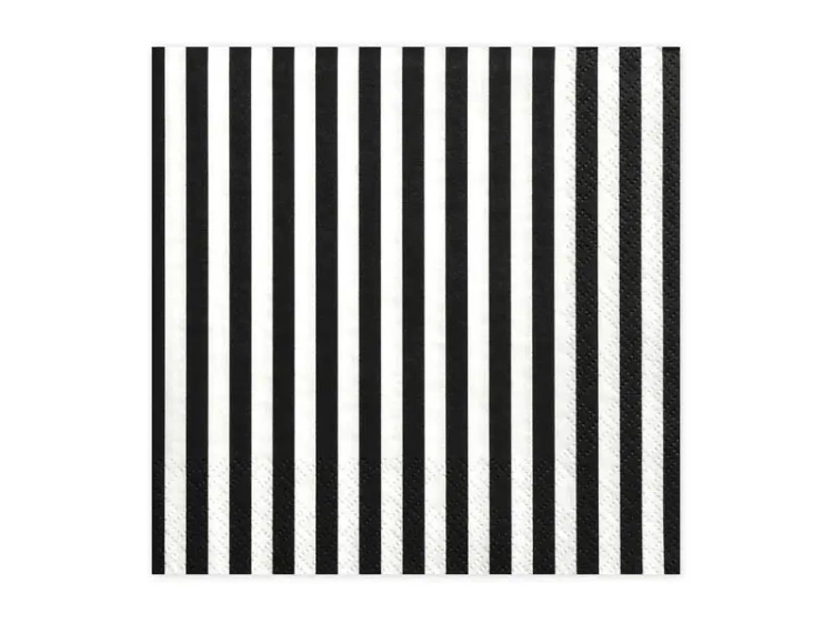 Serwetki Paski czarne 33x33cm 20szt - PartyDeco