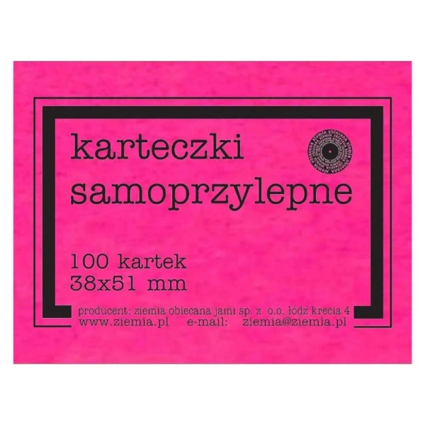 Karteczki samoprzylepne Fluo 38x51mm 100K róż - Ziemia Obiecana