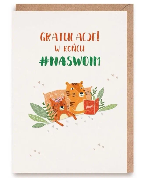Kartka od serca od Cardie, o wymiarach formatu A6, z czarującą grafiką na okładce. Wnętrze jest puste, idealne do zapisania Waszych szczerych słów. Do kompletu dołączona jest ekologiczna koperta.