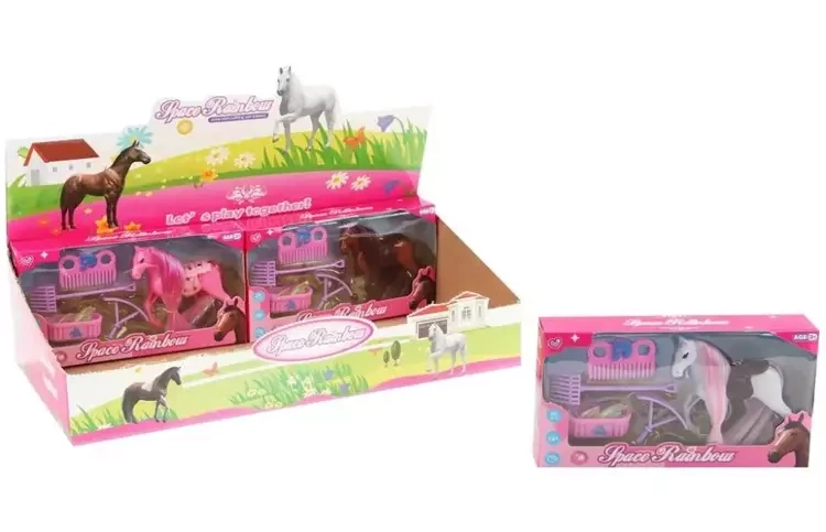Zestaw zawiera pięknie wykonanego konia o realistycznym wyglądzie, który z pewnością przypadnie do gustu każdemu miłośnikowi tych wspaniałych zwierząt. Dopełnieniem całości są akcesoria, takie jak siodełko, wodze, karmnik czy szczotka, które pozwolą na dbanie o końskiego przyjaciela podczas zabawy.