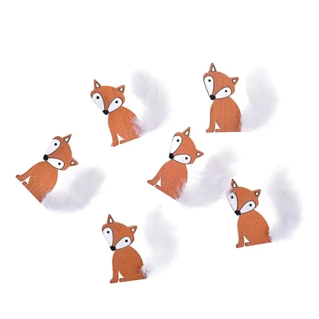 Drewniane liski z futerkiem samoprzylepne 6szt - Dalprint dpCraft