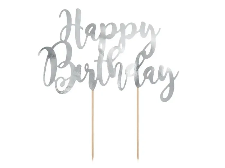 Srebrny Topper na tort Happy Birthday