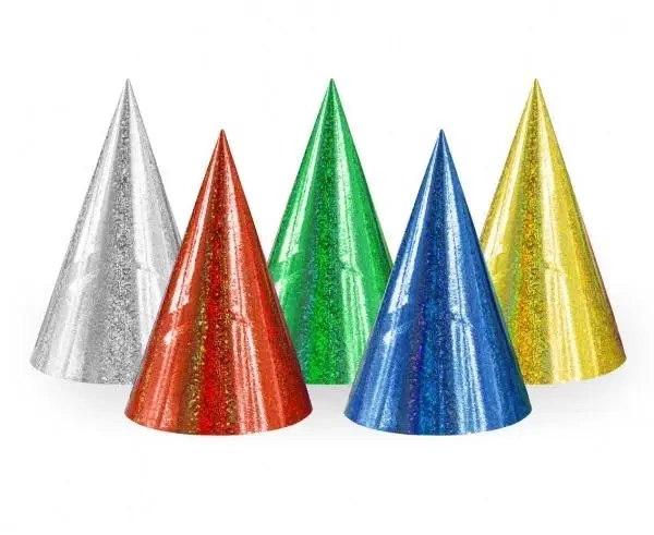 Papierowe czapeczki urodzinowe Godan: błyszczące i wielokolorowe