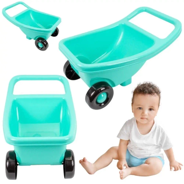 Podręczna taczka dla dzieci, umożliwiająca łatwe przewożenie zabawek i innych przedmiotów dla naszych najmłodszych użytkowników to przede wszystkim rozwiązanie praktyczne. Gwarantuje ona dobrą stabilność dzięki podwoziu z dwoma kołami i dwóm nóżkom. Dodatkowo, posiada szeroką rączkę, dzięki której dzieci mogą swobodnie ciągnąć tą zabawkę jedną lub obiema rękoma.