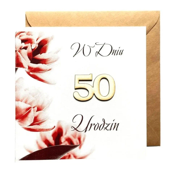 Prezentujemy Kartkę urodzinową przeznaczoną na 50. urodziny, idealną do wręczenia w obecności najważniejszych osób. Ten wyjątkowy dzień możesz uczcić, przekazując życzenia o samej radości, pełnym szczęściu, doskonałym zdrowiu oraz bezgranicznej miłości. Treść na kartce mówi: Na pięćdziesiąte urodziny, Które spędzisz w gronie rodziny, Chcę Ci życzyć samych radości, Szczęścia, zdrowia, dużo miłości. Z lat młodości marzeń spełnienia, Zwyczajnie Ci życzę wszystkiego najlepszego, Prosto ze szczerego serca mojego.