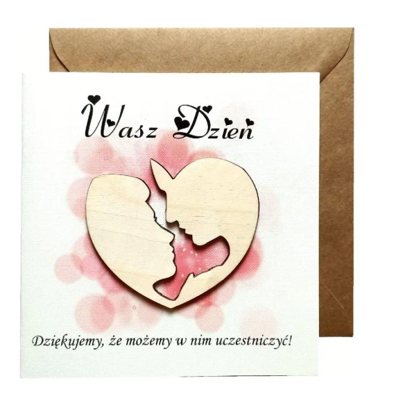 To wyjątkowa kartka okolicznościowa stworzona specjalnie na okazję Ślubu, na której umieszczone są te słowa: "Małżeństwo to piękno ? bycia we dwoje. Małżeństwo to poszukiwanie ? drogi do celu. Małżeństwo to skarb ? którym jest Wasza miłość. Małżeństwo to Wy ? na zawsze razem. Wszystkiego najlepszego na nowej drodze życia?"