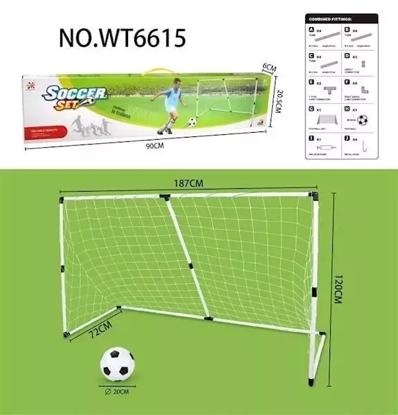 Proste i efektywne - oto jakie są wymiary zestawu: długość równa 90 cm, szerokość 20,5 cm i wysokość 6 cm. Tak skonstruowany zestaw umożliwi Ci wygodne przechowywanie go i transportowanie. Kompaktowe wymiary szczególnie docenisz, kiedy zechcesz zagrać w piłkę nożną na świeżym powietrzu, na pikniku lub na plaży.