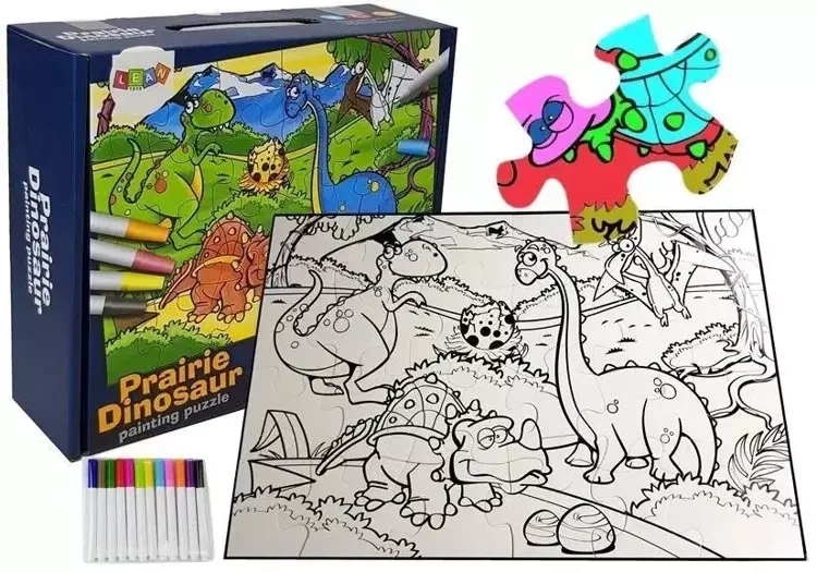 Jest to doskonały pomysł na prezent dla każdego dziecka, które uwielbia bawić się puzzlami i jednocześnie twórczo rozwijać swoje zdolności artystyczne. Dzięki temu zestawowi pociecha odkryje zainteresowanie dinozaurami, a Twoje dziecko będzie mogło wyrazić siebie poprzez wybór dowolnych kolorów i pomalowanie obrazka według własnej wyobraźni.