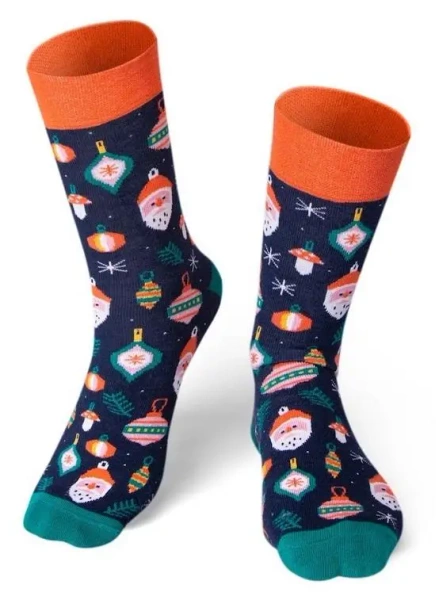 Bombka - to słowo często mylone w pisowni, teraz staje się motywem przewodnim naszych kolorowych świątecznych skarpet! Nietuzinkowe wzory zawierające zarówno tradycyjne bombki, jak i muchomory czy postacie Mikołaja nadają tym skarpetom styl retro. Sprawdzą się idealnie jako drobny upominek na mikołajki lub dodatek do świątecznego prezentu pod choinką. Zamów je już teraz i spraw radość sobie oraz bliskim!