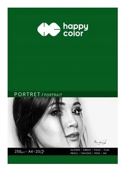 Papier do rysowania PORTRET, wersja Art., format A4, pakowany w zeszyty po 20 arkuszy, gramatura 250g, seria Happy Color.