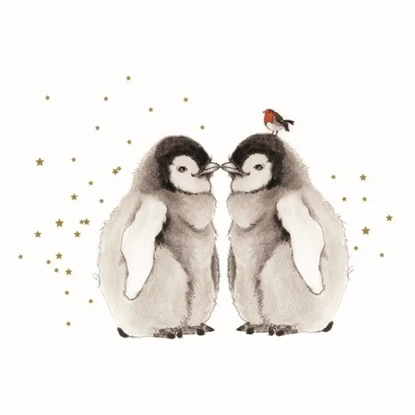 Karnet Swarovski kwadrat Pingwinki i ptaszek - Clear Creations