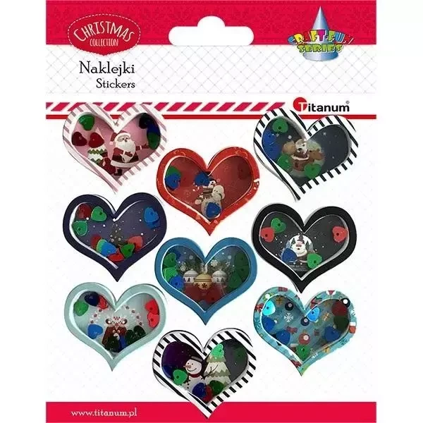 Prezentujemy zestaw 3D naklejek sercowych z zimowym motywem Titanum