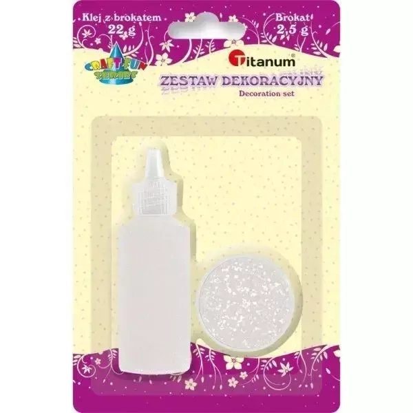 Zestaw klej z brokatem + brokat w słoiczku biały - Titanum
