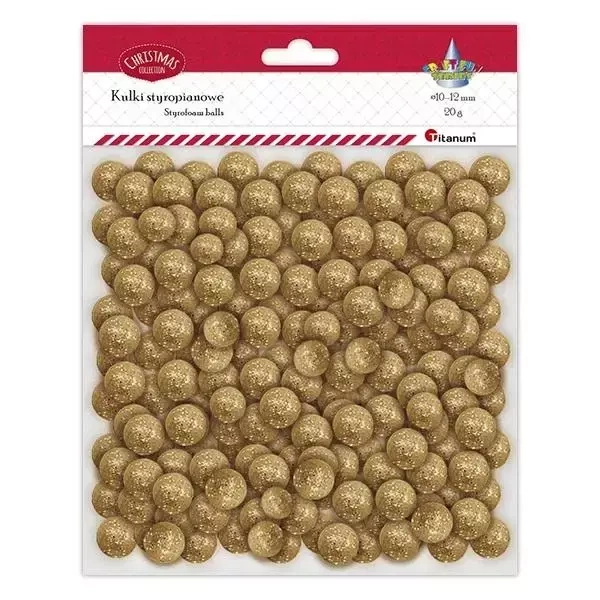 Mix złotych kulek styropianowych o gramaturze 20g i średnicy wynoszącej 10-12mm.