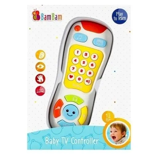 BAM BAM to również doskonałe odwzorowanie realnego pilota telewizyjnego. Mnóstwo przycisków i funkcji, które można naciskać, sprawiają, że dziecko ma okazję do eksplorowania i odkrywania nowych sposobów na zabawę. Kolorowe guziki, które mają różne tekstury oraz kształty, świetnie wpływają na rozwój percepcji dziecka. Ponadto, wydawane przez zabawkę melodie i dźwięki oraz migające światełka stanowią świetną stymulację zmysłową, motoryczną oraz rozwój zdolności manualnych dziecka.