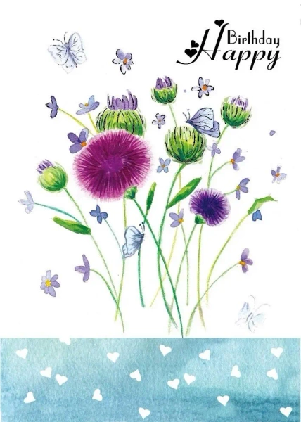 Prezentowany jest tutaj elegancki karnet urodzinowy o formacie B6, który nosi oznaczenie MR-16-15. W jego wyjątkowej stylistyce dominują kolorowe, przyciągające wzrok kwiaty, a dodatkowym atutem są naklejane cekinamy, które dodają całości błyskotki.