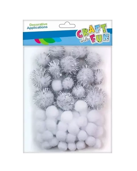 Pompony białe/brokatowe 50szt - Craft with Fun
