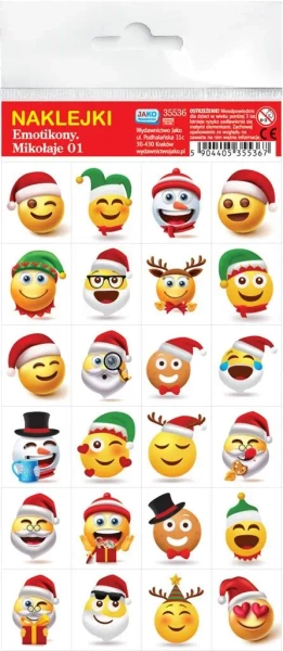 Zbiór 24 samoprzylepnych naklejek z wizerunkiem Mikołaja-emotikonów