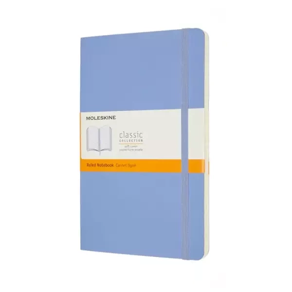 Moleskine Classic notatnik o rozmiarze L (13x21 cm) z miękką okładką i 240 stronami, prezentuje się w atrakcyjnym odcieniu błękitu - Hydrangea Blue.Wszechstronna kolekcja notatników