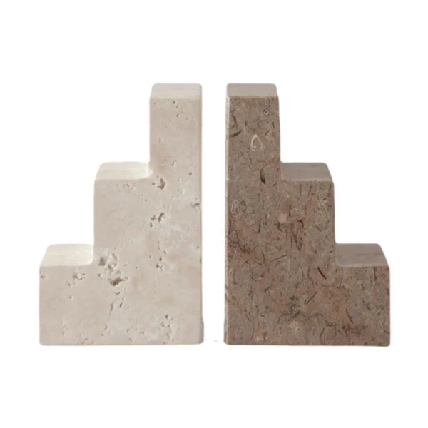 Podpórki do książek Stair Cube - naturalne kamienie trawertyn i wapień
