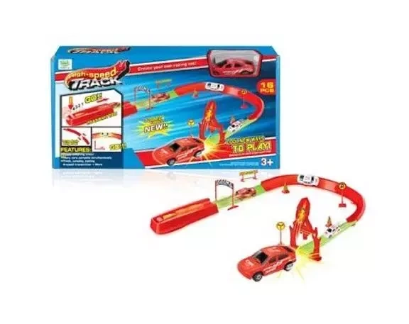 Przedstawiamy doskonałą zabawkę dla dzieci - tor wyścigowy z wyrzutnią samochodów SWEDE! Twoje dziecko będzie się wspaniale bawić, puszczać samochód w świat, a jego rozwój będzie skupiony na długodystansowych rajdach. W zestawie znajduje się 16 różnych elementów oraz jedno samochodowe autko wyścigowe.