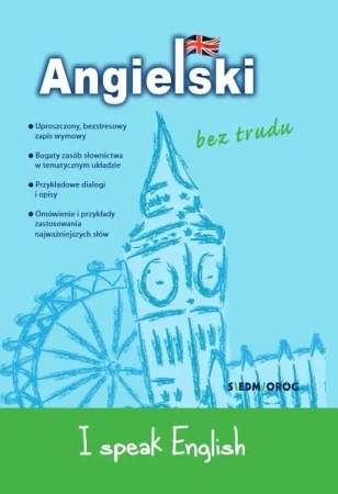 I speak English to publikacja, która w niezwykle czytelny sposób uczy sprawnego porozumiewania się w języku angielskim. Przejrzysta struktura książki, bogaty zasób słownictwa oraz mnóstwo przydatnych zwrotów opatrzonych przykładami zaczerpniętymi z życia sprawiają, że bez trudu odnajdujemy się w codziennych sytuacjach komunikacyjnych. Dodatkowym ułatwieniem jest wprowadzenie uproszczonej transkrypcji. Materiał zawarty w książce obejmuje m.in. następujące zagadnienia: 1. Słownictwo: powitania i pozdrowienia; spotkania; opisywanie osób; rodzina; uczucia; dom; jedzenie i picie; rozmowy telefoniczne; zdrowie; ubrania; sprawy urzędowe; pogoda; czas wolny, kultura, sztuka; czas; szkoła; praca; komputer; podróże; liczby. 2. Zasady i przykłady użycia, m.in.: czasowników; rzeczowników; przymiotników; przysłówków. Książka adresowana jest do uczniów szkół gimnazjalnych i ponadgimnazjalnych, studentów oraz osób korzystających z języka angielskiego z racji zawodu, a także wszystkich, którzy pragną płynnie porozumiewać się w języku angielskim.