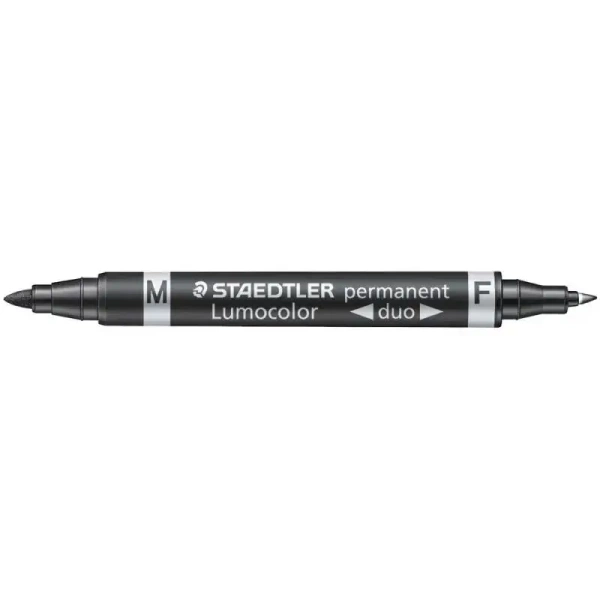 Wodoodporny, czarny marker dwustronny Lumocolor M od Staedtler