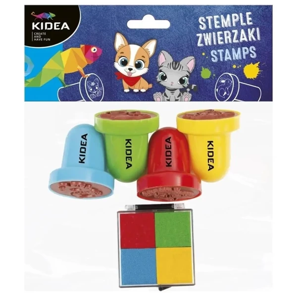 Zestaw stempelków Zwierzaki KIDEA – idealny dla początkujących artystówZestaw stempelków ze zwierzakami KIDEA sprawdzi się doskonale u dzieci, które stawiają pierwsze kroki w świecie plastyki. Prostota użytkowania i urocze wzory zwierzątek zachęcają do twórczego działania, a mnogość dostępnych kształtów pozwala na swobodne eksperymentowanie. Tusz w czterech kolorach na poduszce pozwala na uzyskanie niepowtarzalnych efektów i kolorystycznych kombinacji podczas pracy z zestawem.