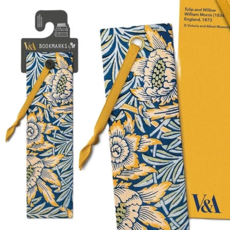Tej eleganckiej zakładki do książki nie można pominąć. Jest wykonana ze skóry i ma przywiązana kolorową wstążkę. Wyjątkowy design na niej to wzór, który pochodzi z prestiżowego muzeum Wiktorii i Alberta.