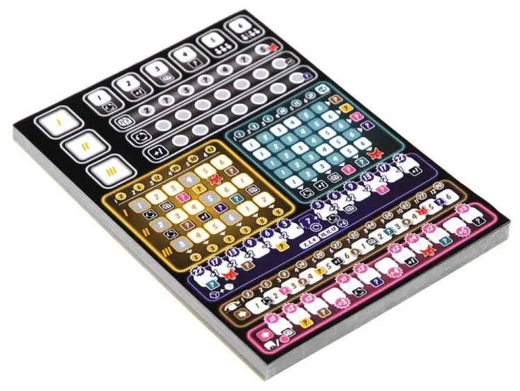 Bloczek został zaprojektowany z dwustronnymi kartkami. Jedna strona kartki służy do odnotowywania punktów zdobytych za każdym razem, gdy rzucasz kośćmi. Natomiast druga strona bloczka przeznaczona jest do podsumowania ostatecznych rezultatów. Dzięki temu łatwo i szybko zobaczysz swoje osiągnięcia i zyskasz motywację do dalszej gry.