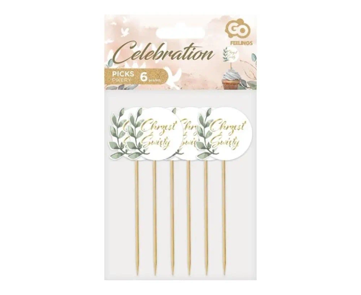Pikery na Chrzest Święty z motywem liści, zestaw 6 sztuk