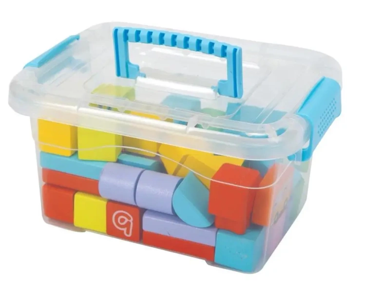 Odkryj nieograniczone możliwości zabawy z 76 kolorowymi klockami drewnianymi, które znajdują się w poręcznym, plastikowym pojemniku z rączką. Te różnorodne kształty zapewniają godziny kreatywnej zabawy, pozwalając dzieciom na zbudowanie nieskończonej liczby konstrukcji.