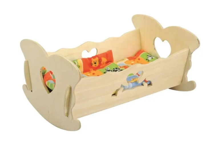 Prezentowana mała drewniana kołyska dla lalek wyróżnia się oryginalnym wyglądem i ciekawym kształtem. Jest to produkt ekologiczny, stworzony z dbałością o środowisko. Wykonanie kołyski z bezpiecznego materiału i brak ostrych krawędzi sprawiają, że stanowi doskonałą zabawkę dla dziewcząt w różnym wieku.