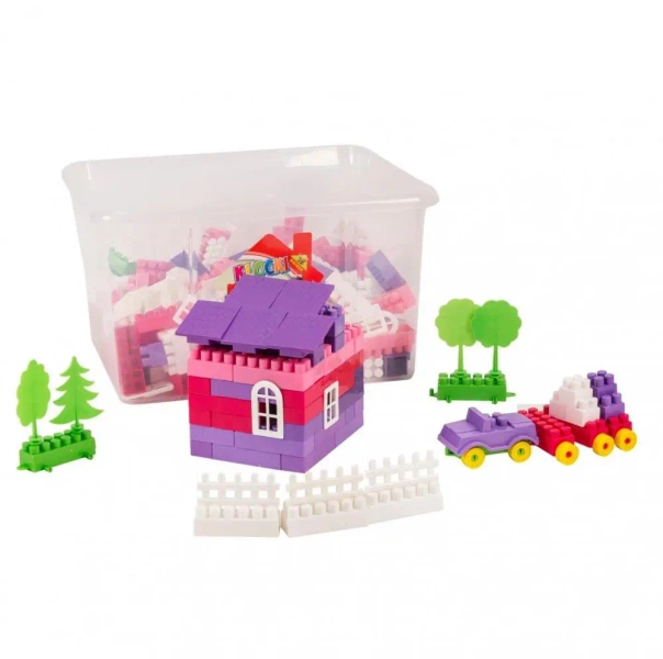 Prezentujemy średniej wielkości zestaw klocków przechowywanych w wygodnym pojemniku, zawierający 345 elementów. Ten urokliwy zestaw został stworzony z myślą o dziewczęcych upodobaniach kolorystycznych. Klocki można łączyć na różne sposoby, tworząc niesamowite konstrukcje i budowle.