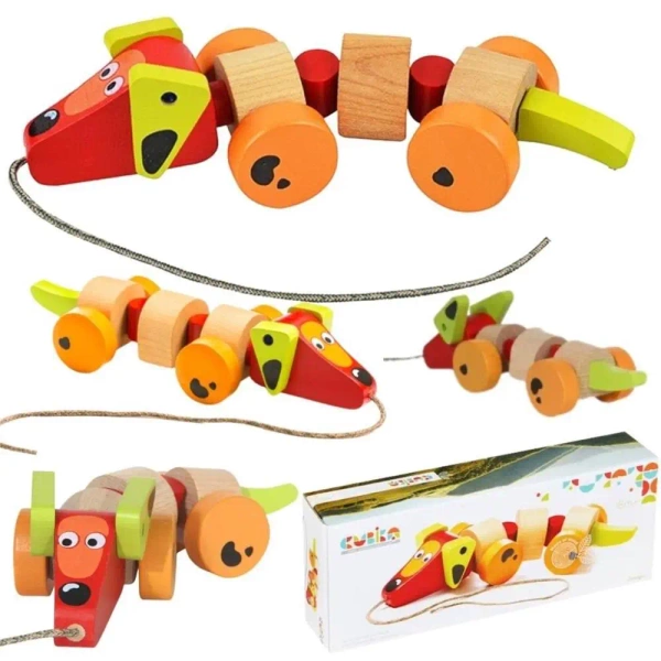 Drewniany wózek linowy dla dzieci - Pies Cubika