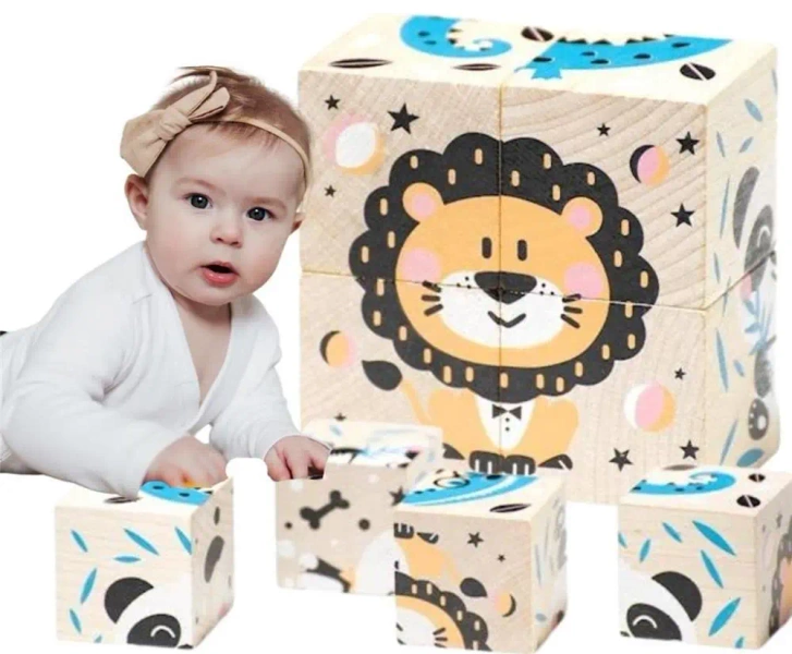 Wielkość klocków została idealnie dopasowana do małych rączek, a proste motywy zwierząt nie sprawiają nikomu trudności podczas zabawy. Zabawka rozwija motorykę małą, jednocześnie pobudzając dziecięcą wyobraźnię oraz kreatywne myślenie.