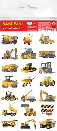 Zestaw kreatywny z 21 samoprzylepnymi naklejkami z motywem maszyn budowlanych