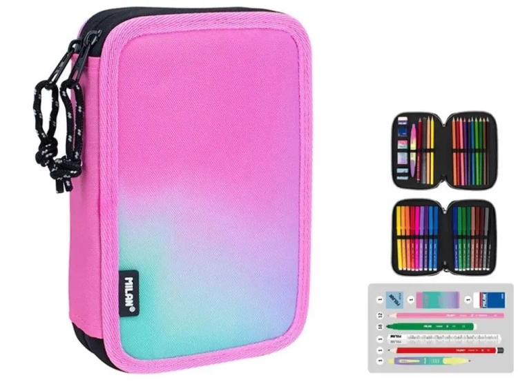 Piórnik 2 poz. z wyposażeniem Sunset różowy MILAN
