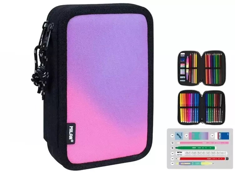 Piórnik 2 poz. z wyposażeniem Sunset czar. różowy - MILAN