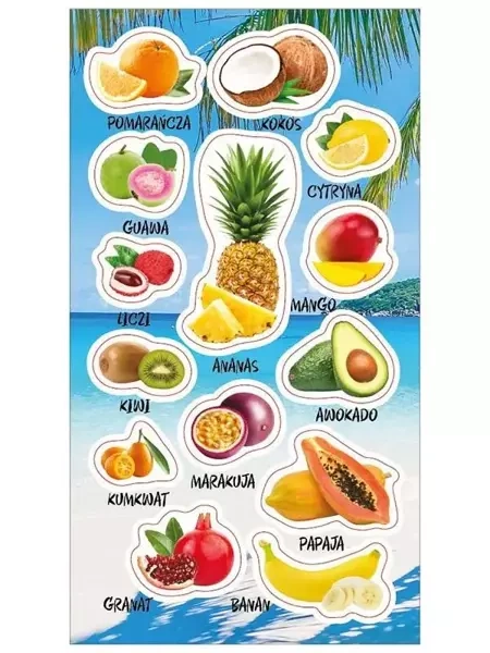 Odkryj piękno egzotycznych owoców dzięki zestawowi 14 tropikalnych naklejek z przekrojem i opisami. Doskonale urozmaicą one wygląd zeszytów, albumów, listów czy pocztówek. Zaprojektowane z myślą o szkolnej edukacji, stanowią polecany element szkolnego ekwipunku.