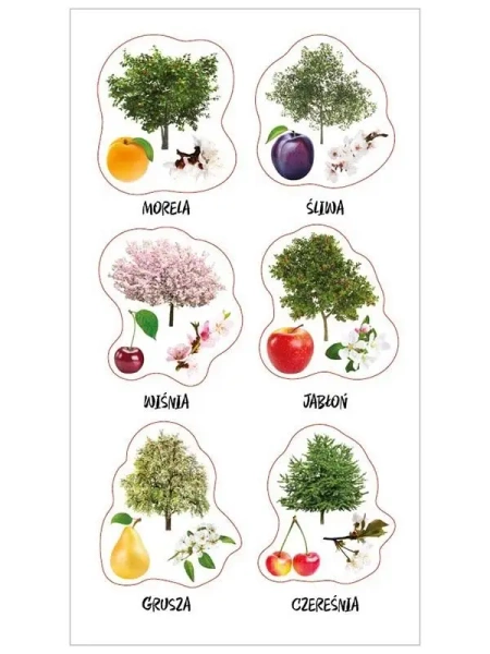 Niesamowity zbiór naklejek, który doskonale sprawdzi się do personalizacji zeszytów, zdobienia albumów, listów czy pocztówek. W skład zestawu wchodzi aż 6 naklejek, które prezentują wybrane owoce, drzewa oraz kwiaty z polskich sadów. Dodatkowo, wszystkie elementy są zaopatrzone w interesujące opisy. Zdecydowanie polecamy ten produkt do zastosowania w szkołach!