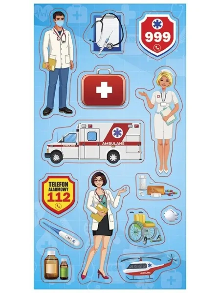 Przedstawiamy komplet naklejek dedykowany do ozdabiania różnego rodzaju przedmiotów. Każdy zestaw zawiera 14 naklejek o tematyce lekarskiej. Produkty te są idealne do przyozdabiania zeszytów, albumów, listów czy pocztówek. Produkt zalecany do zastosowania w szkołach.