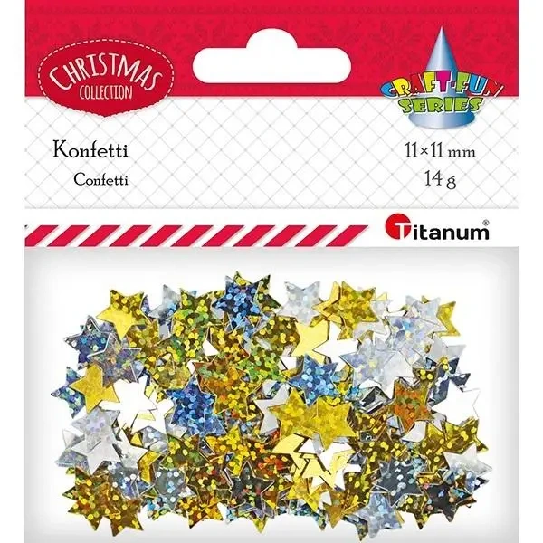 Konfetti Gwiazdki złote, srebrne hologram 14g - Titanum